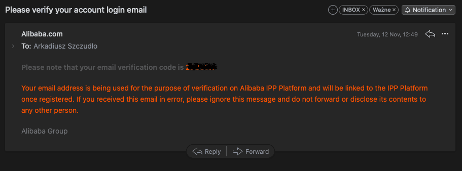 W tym celu powinieneś wejść na platformę (znajduje się ona pod adresem: https://ipp.alibabagroup.com/index.htm) i kliknąć zakładkę “Register”. Kolejnym krokiem jest wypełnienie prostego formularza zawierającego następujące dane: